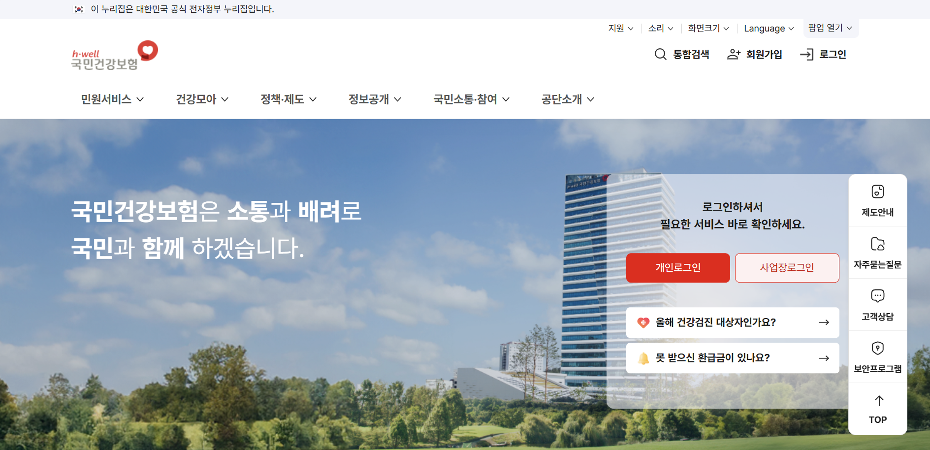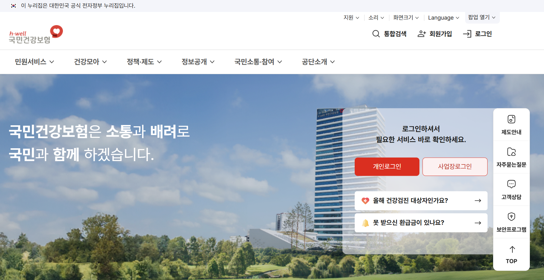 아래에서 가까운 건강보험공단을 신속하게