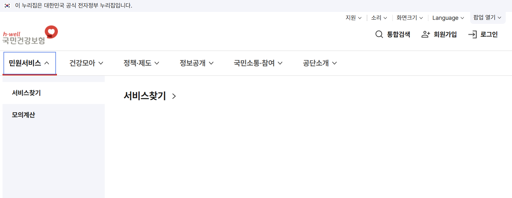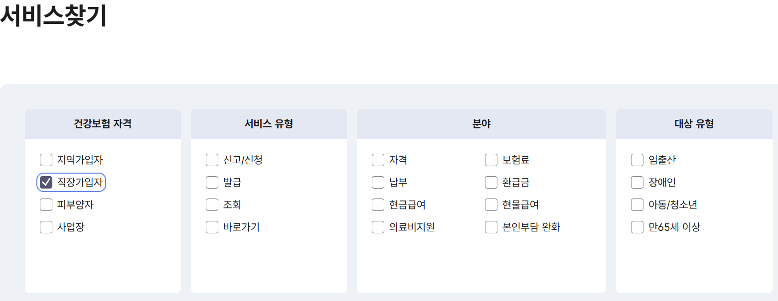 3."서비스 찾기"에서 "직장가입자"에 체크