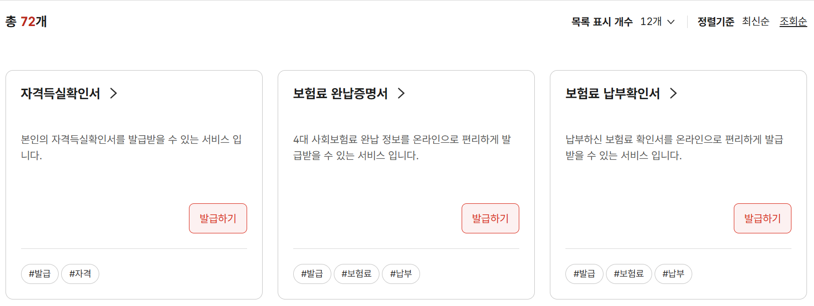2️⃣메뉴에서 '건강보험자격득실확인서' 선택 후 즉시 발급.