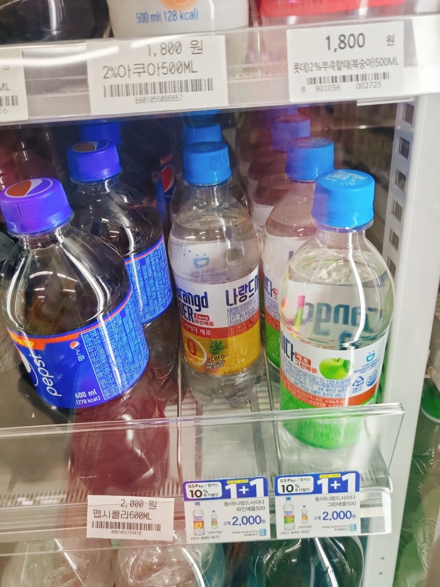 집 앞 편의점에서 바로 발견할수 있었지!! 지에스25에서 500ml에 2000냥이지만 신상임에도 쏘 럭키하게 1+1행사로 1병기준 1000냥으로 데려왔다