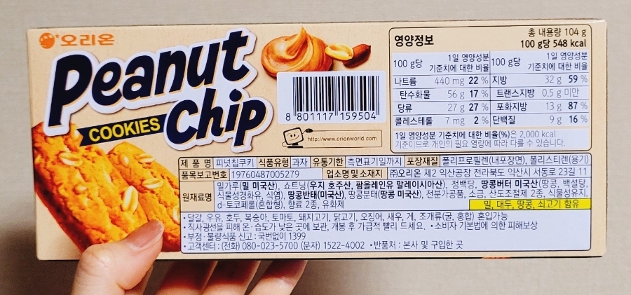 보자마자 기쁜 마음으로 피넛칩 쿠키를 집어들었는데