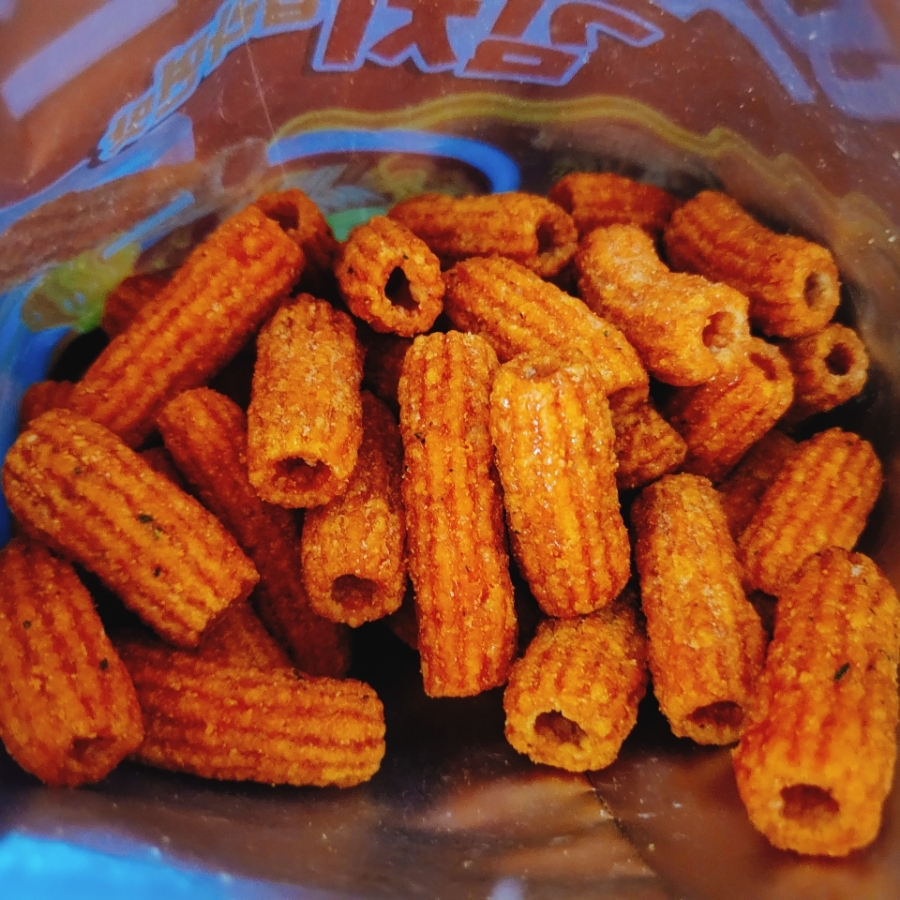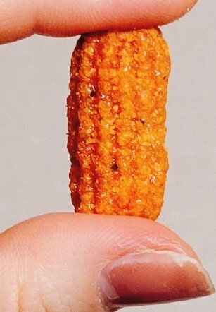 기존의 떡볶이 스낵들이 얇고 긴 편이였다면 김치컵라면맛 떡볶이 스낵은 짧똥한 스타일!!
