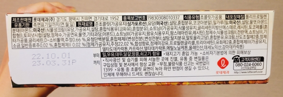 그 외에 싱가포르산 준초콜릿..ㅋ 역시.. 그리고 미국산 밀가루,쇼트닝,.식물성크림과 여러가지 정체를 알수 없는 화학물질이 들어있다