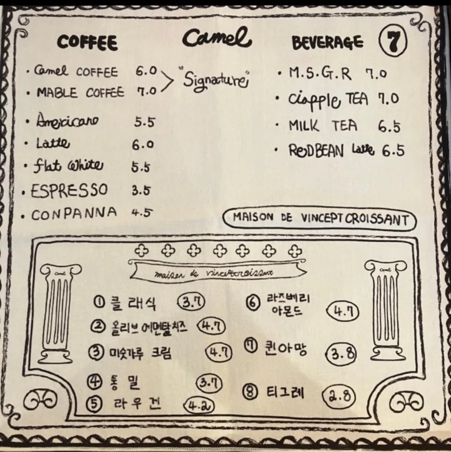 이사진은 실제 서울에서 운영중인 카멜커피의 메뉴판인데요 실제 메뉴판에도 M.S.G.R이라는게