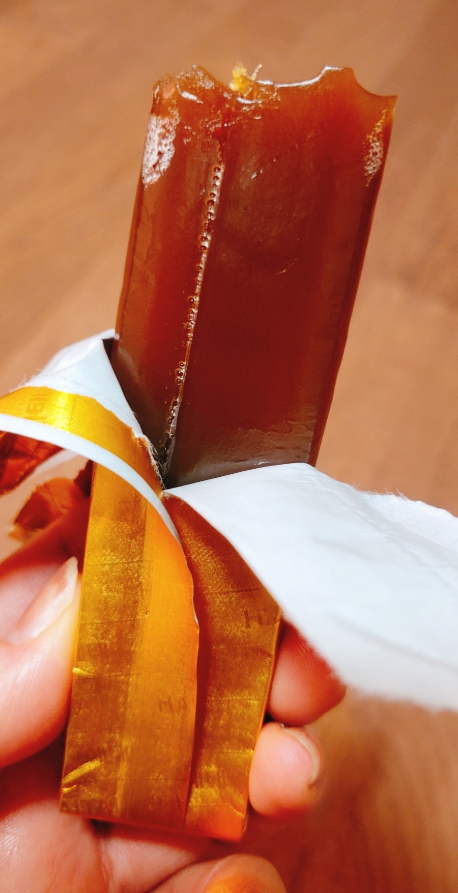 고동색에 가까운 팥양갱과는 달리 황금색?