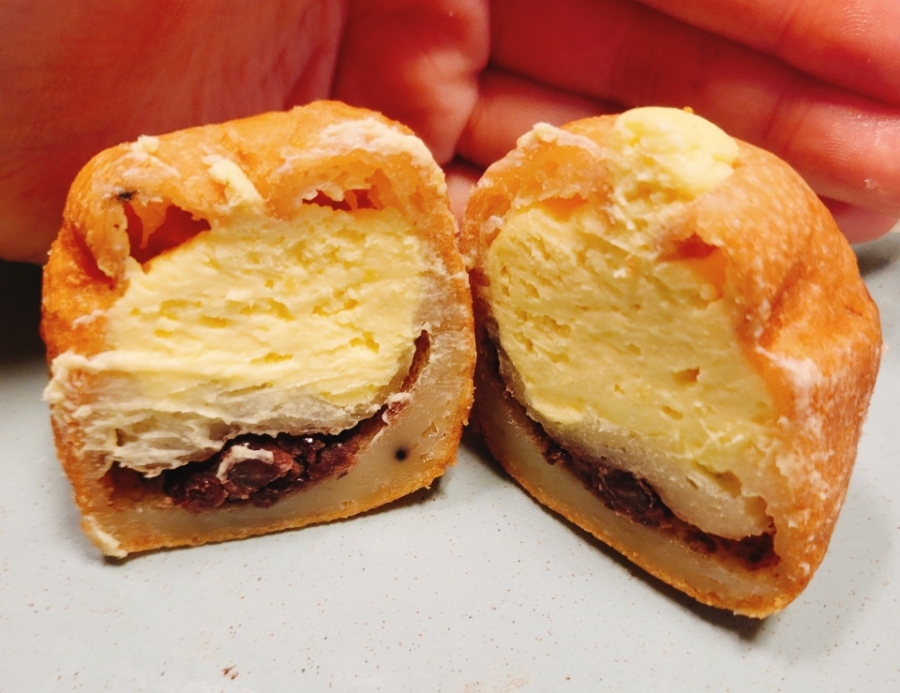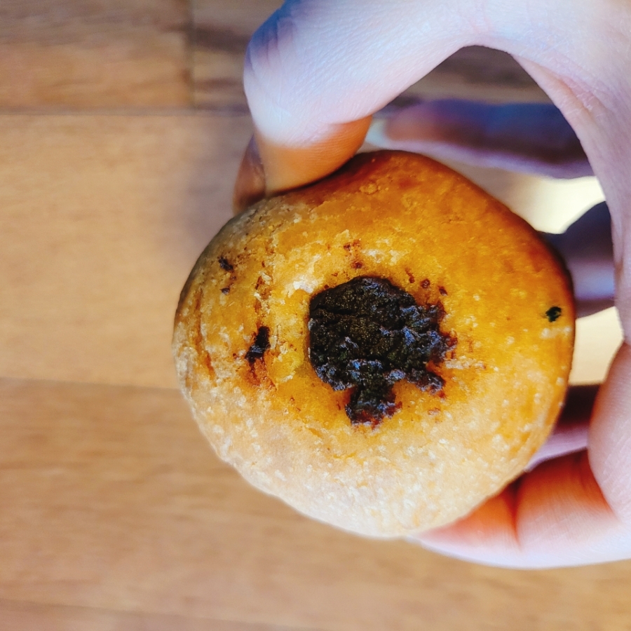 위에 동그란 토핑만보고 팥인줄 알았으나 반을 갈라보니