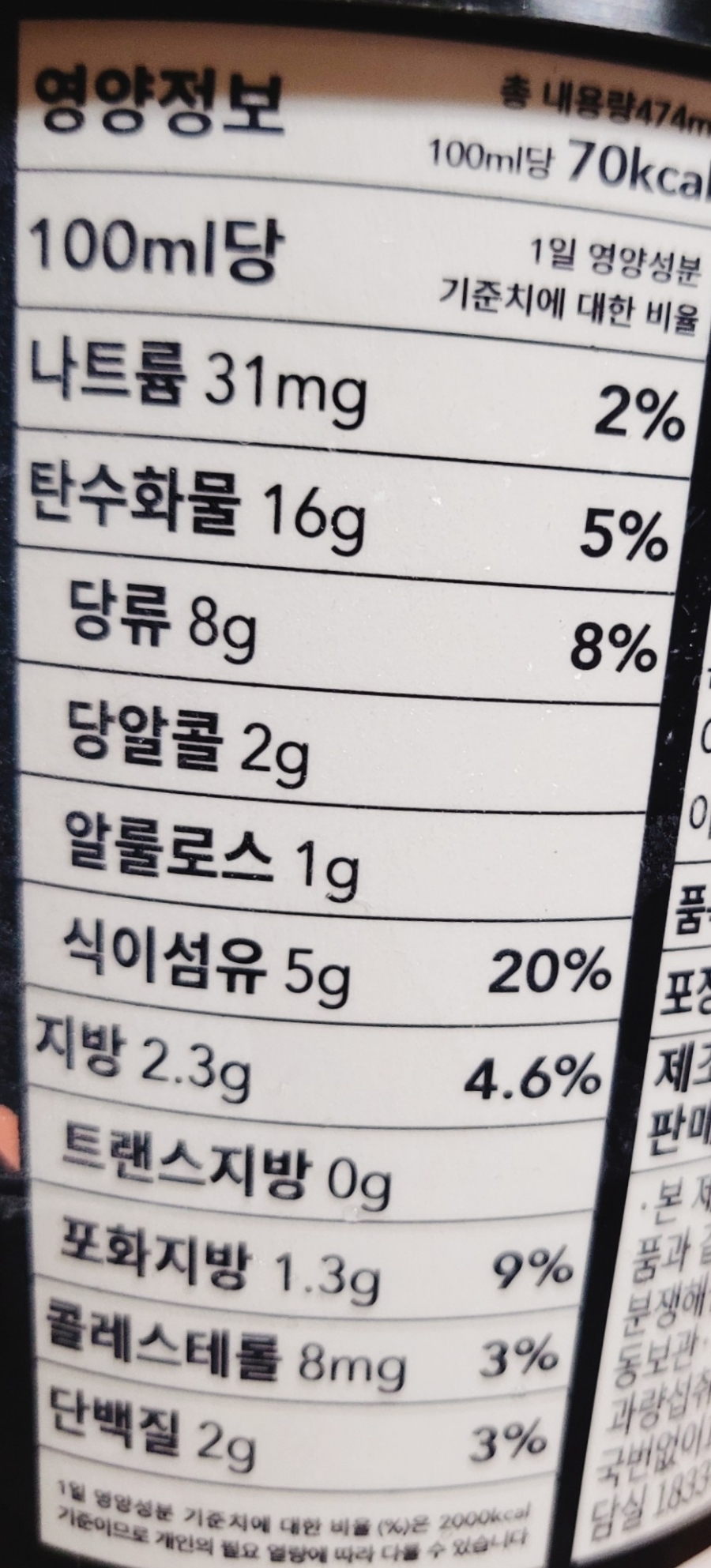 성분표를 살펴보면 총474ml 중 100ml 기준 즉 전체의