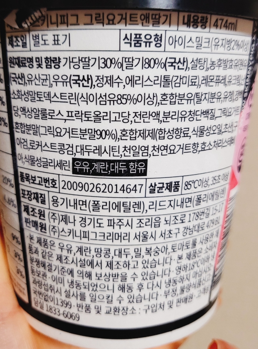 스키니피그 그릭요거트 앤 딸기를 위해 국산딸기24%,