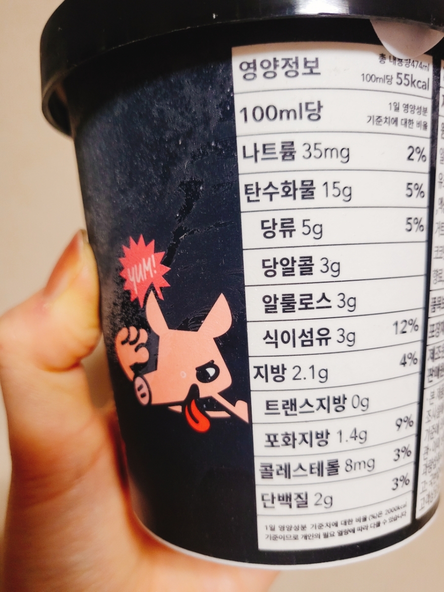 주목할만한점은 아이스크림 한통 다먹을 경우 식이섬유를