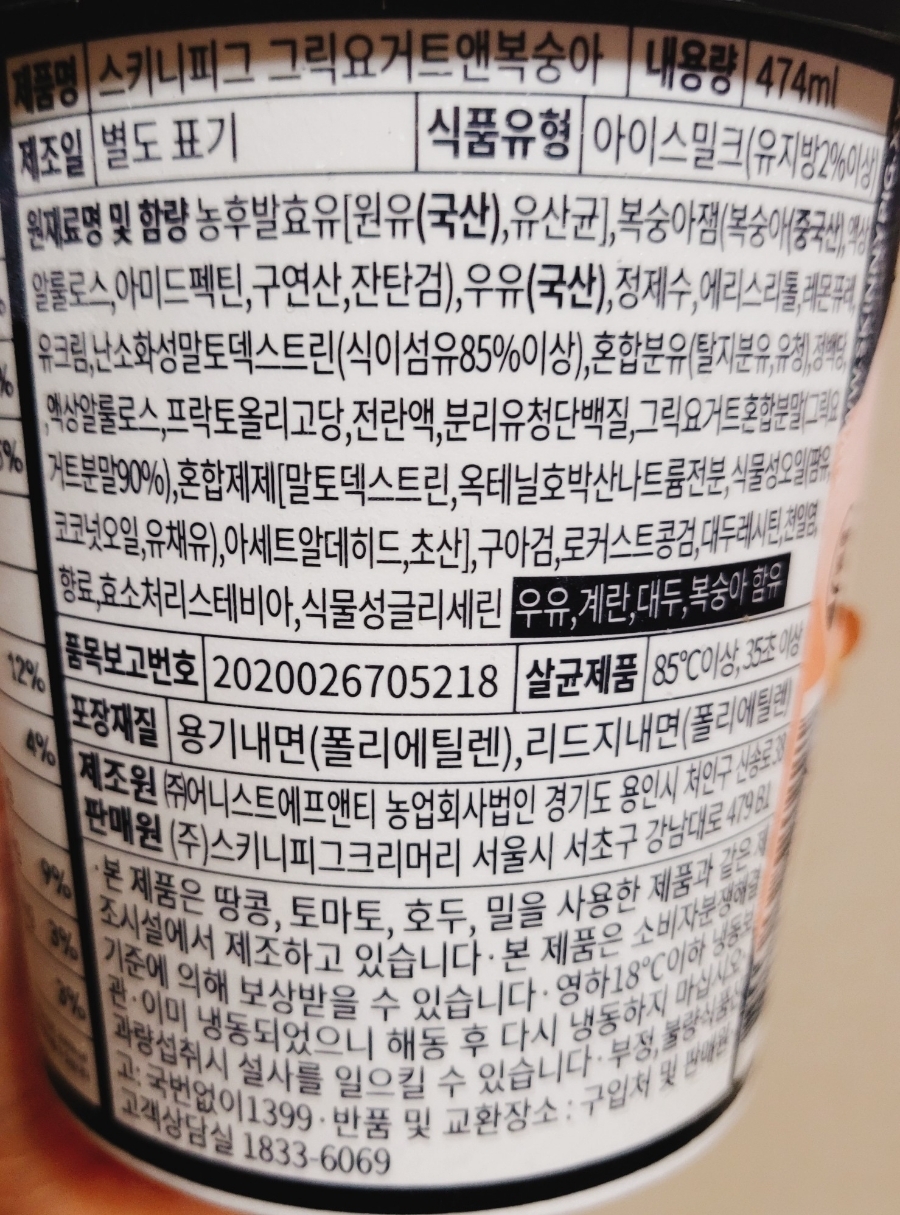 올려져 있는데 누가봐도 복숭아그릭요거트맛이다