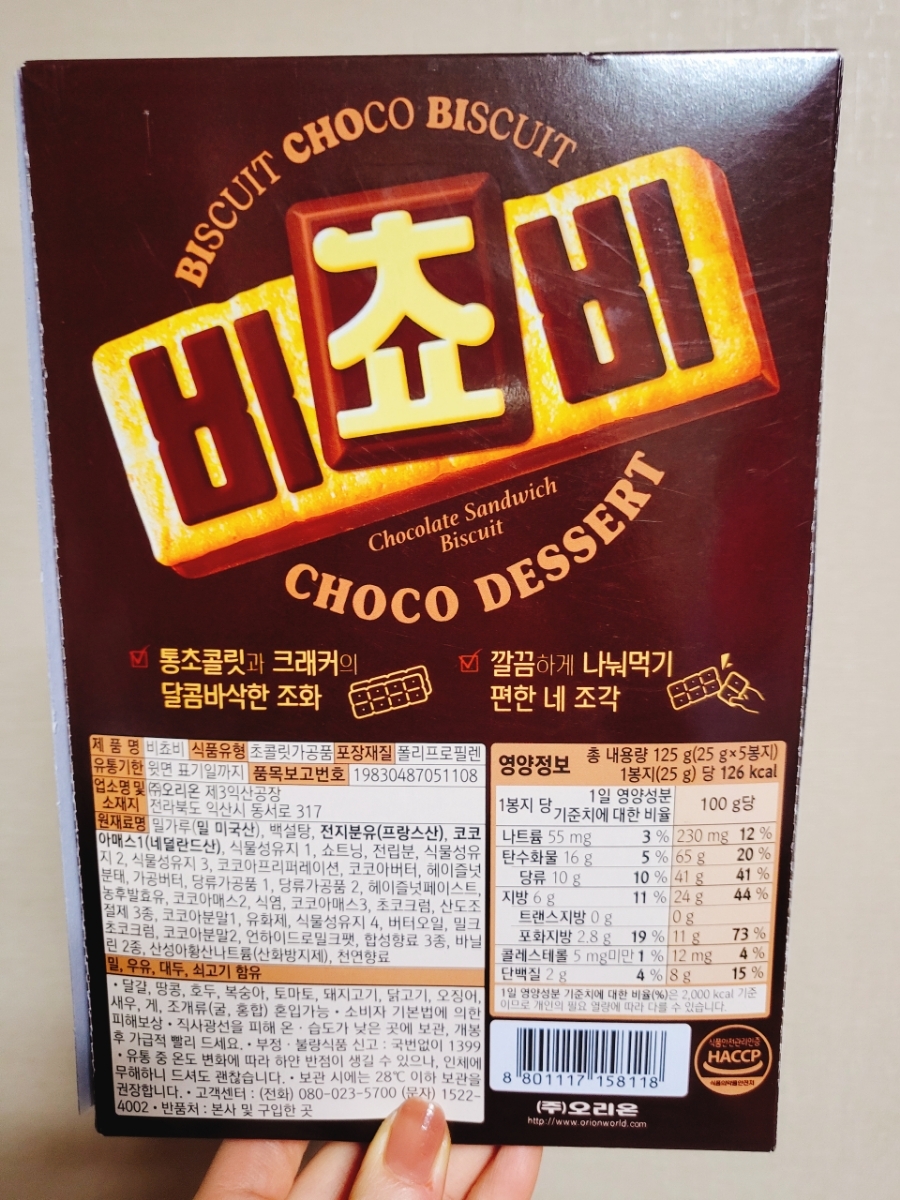 헤이즐넛 향 나는 비스킷사이에 샌드되어 있는 달달한 초코가 사르르 녹는맛에 온 입 안에 퍼지는 달달함으로 미각은 물론마음도 달달해지는 맛!! 에 별 네개를 주었다