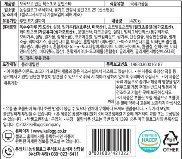 켈로그 첵스초코 문앤스타에 뭐가들었나?