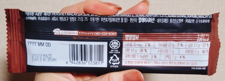 쓱닷컴에서 새벽배송으로 40g 초코바1개기준