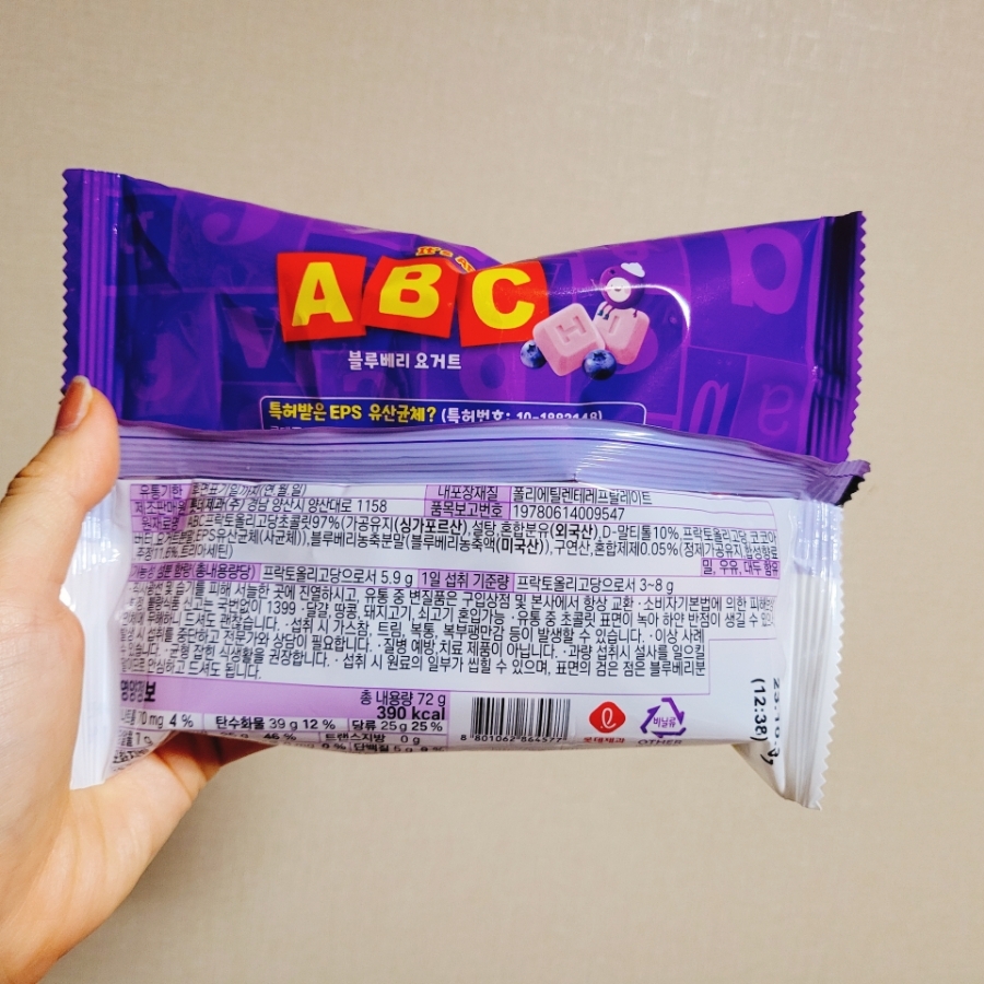 블루베리 요거트맛이고 유산균까지 들어있는 롯데 ABC초콜릿 👍 👍 맛과 건강 두마리 토끼를 한번에