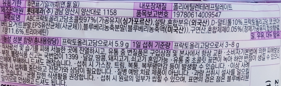 그 외에초코의 달달한 맛을 위해ABC프락토올리고당 초콜릿97%,설탕,구연산,혼합분유 등이 들어있습니다