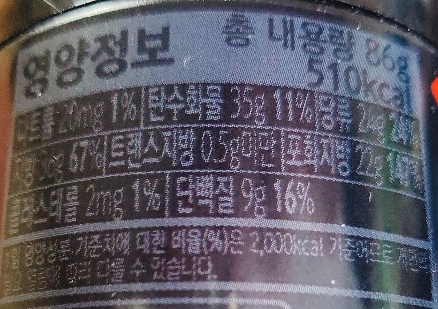 역시나 뒷면에는 영양정보와 원재료명이 나와있습니다