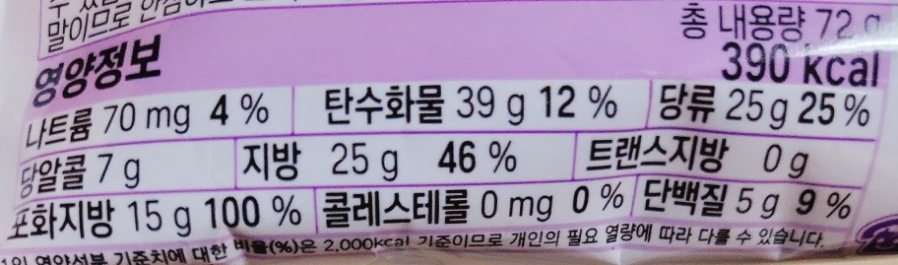 총 내용량 72g 기준 390kcal인데 20개가 들어있으니