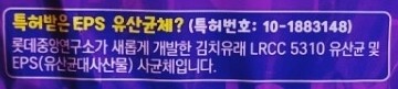특허받은 EPS유산균체란 롯데중앙연구소가 새롭게 개발한 김치유래 LRCC 5310유산균및 유산균 대사산물 사균ㅊㅔ라고 합니다
